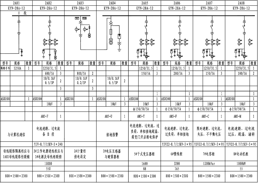 10KV雙電源變電所一次系統單線圖單母分段兩饋線兩變壓器兩電容器兩電動機