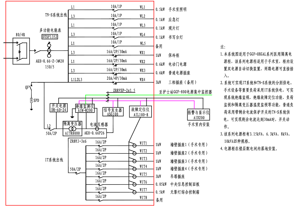 GGF-OXGAL醫(yī)用隔離電源柜系統(tǒng)接線圖