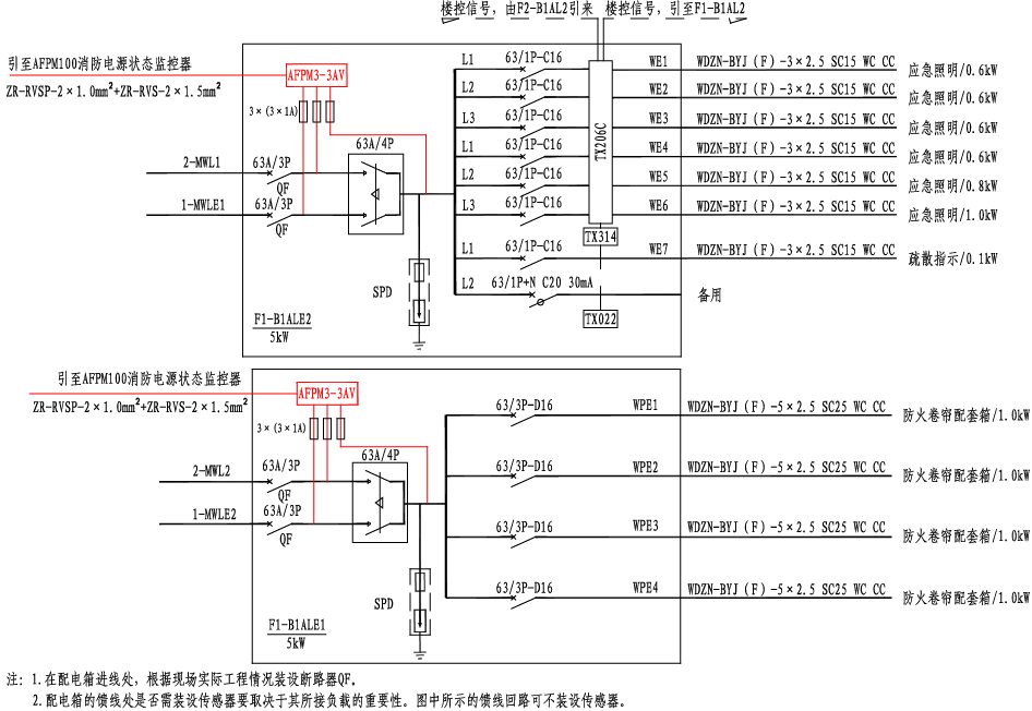 樓層應急照明、防火卷簾電源監(jiān)控系統(tǒng)圖