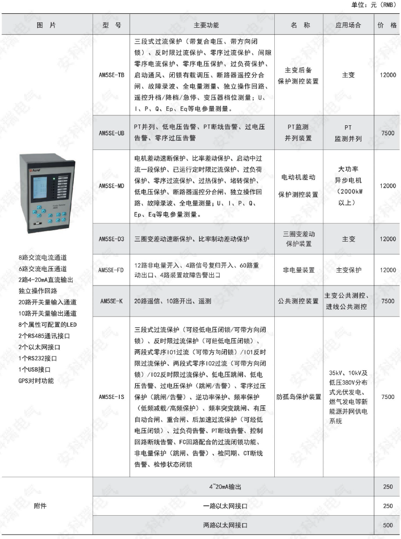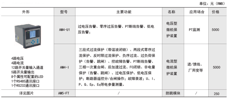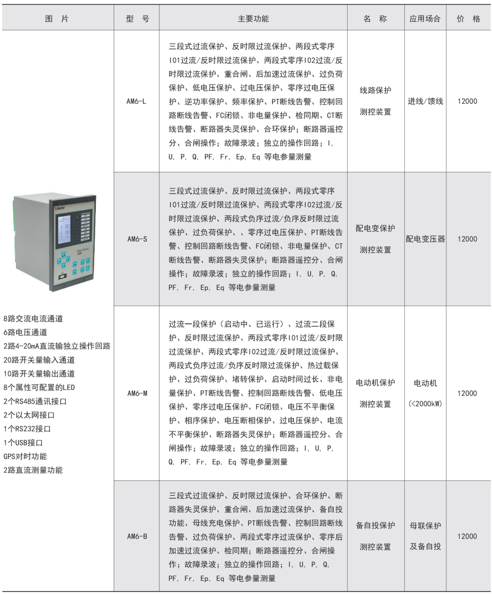 產品簡介:AM系列微機保護測控裝置集保護、測量、控制于一體,適用于35kV及以下電壓等級的用戶終端變電站(所),可實現用戶變電站的全面保護和測控。