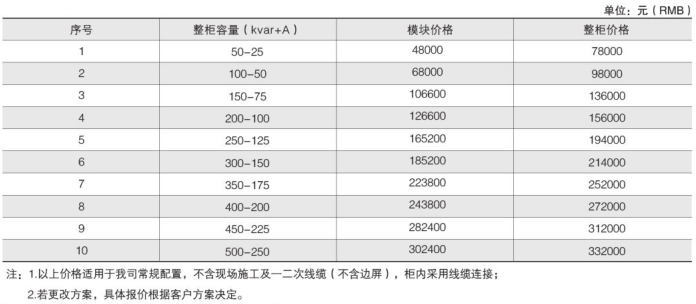 技術參數:無功補償分補容量100kvar,共補容量50kvar