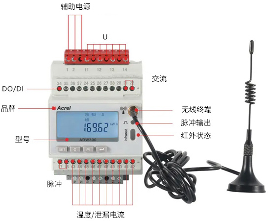 ADW300無線計(jì)量儀表主要用于計(jì)量低壓網(wǎng)絡(luò)的三相有功電能,具有RS485通訊和470MHz無線通訊功能,方便用戶進(jìn)行用電監(jiān)測、集抄和管理。可靈活安裝于配電箱內(nèi),實(shí)現(xiàn)對不同區(qū)域和不同負(fù)荷的分項(xiàng)電能計(jì)量,統(tǒng)計(jì)和分析。