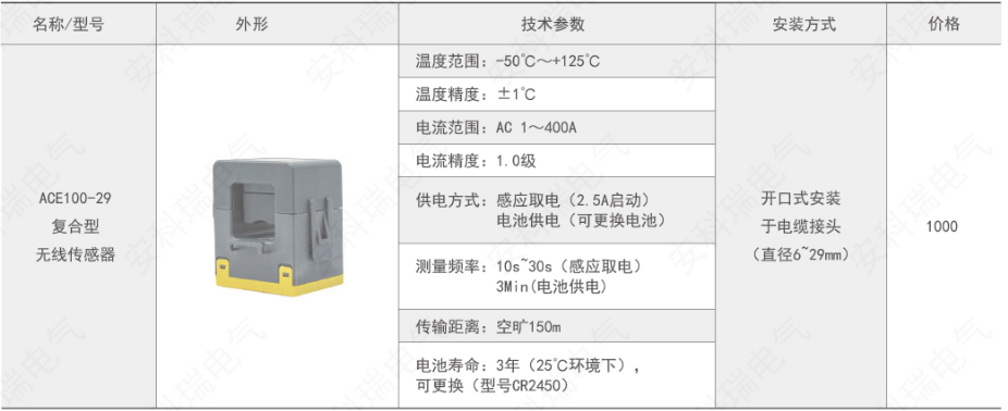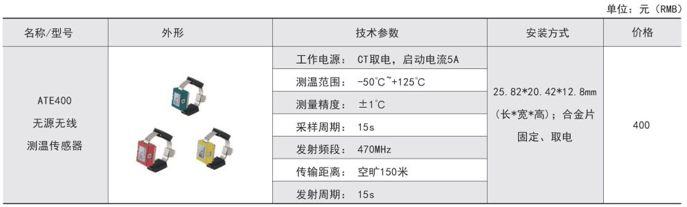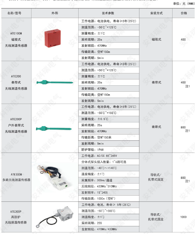 綜上所述,確定型號(hào)為:無(wú)線測(cè)溫裝置:ARTM-P9-300,1臺(tái);無(wú)線測(cè)溫傳感器:ATE300,9個(gè)