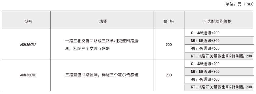 ADW350無線計量儀表有交流、直流之分,適用于計量低壓網絡用電監測、電信基站用電監測、太陽能供電計量等場合。