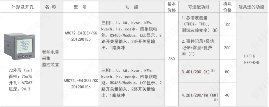 AMC 系列可編程智能電測儀表是針對電力系統(tǒng)、工礦企業(yè)、公用設(shè)施、智能大廈的電力監(jiān)控需求而設(shè)計的智能儀表,它集成電力參數(shù)的測量(如單相或者三相的電流、電壓、有功功率、無功功率、視在功率、頻率、功率因數(shù))以及電能監(jiān)測和考核管理。采用高亮度 LED/LCD 顯示界面,通過按鍵來實現(xiàn)參數(shù)設(shè)置和控制,非常適用于實時電力監(jiān)控系統(tǒng)。可以直接取代常規(guī)電力變送器及測量儀表。作為一種智能化、數(shù)字化的前端采集元件,該儀表已廣泛應用于各種控制系統(tǒng)、SCADA 系統(tǒng)和能源管理系統(tǒng)中。
