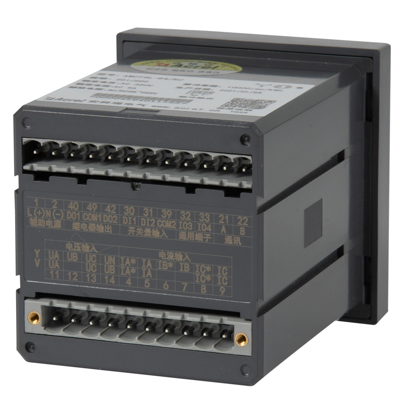它集成全部電力參數(shù)的測量(如單相或者三相的電流、電壓、有功功率、無功功率、視在功率、頻率、功率因數(shù)等)、復費率電能計量、四象限電能計量、諧波分析以及電能監(jiān)測和考核管理。多種外圍接口功能:帶有RS485/MODBUS-RTU協(xié)議;帶開關(guān)量輸入和繼電器輸出可實現(xiàn)斷路器開關(guān)的“遙信”和“遙控”的功能,采用LCD顯示界面,通過面板按鍵來實現(xiàn)參數(shù)設(shè)置和控制,非常適合于實時電力監(jiān)控系統(tǒng)。