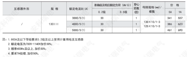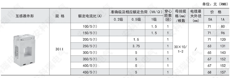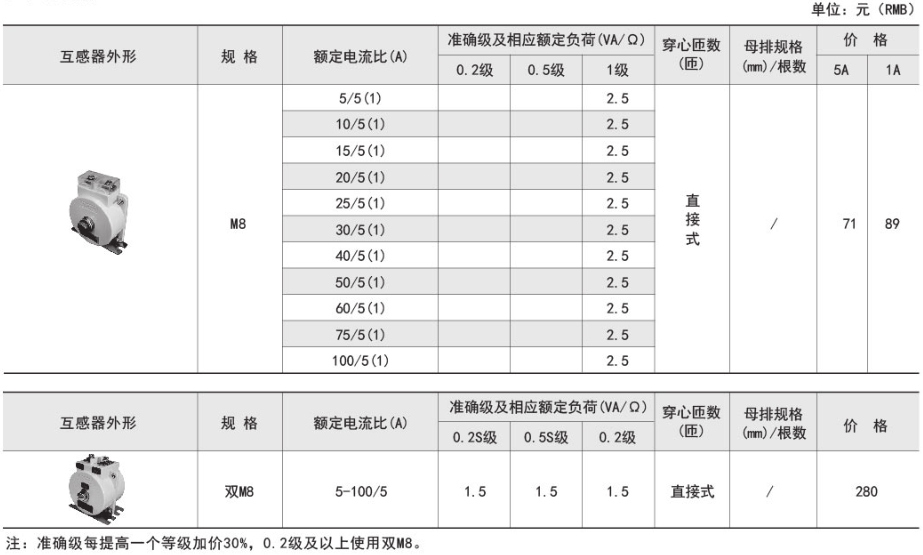 技術要求:額定電流比100A/5A; 準確級1級; 穿心匝數1匝;額定負荷1.5VA;內孔徑φ22mm;穿排規格30mm×10mm 1根。