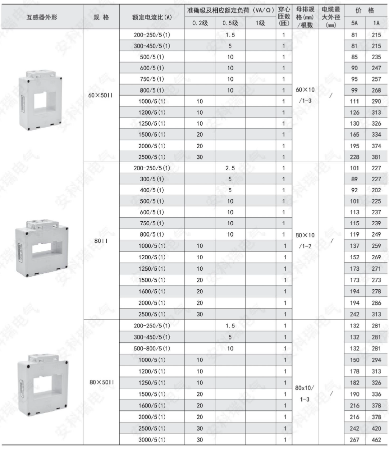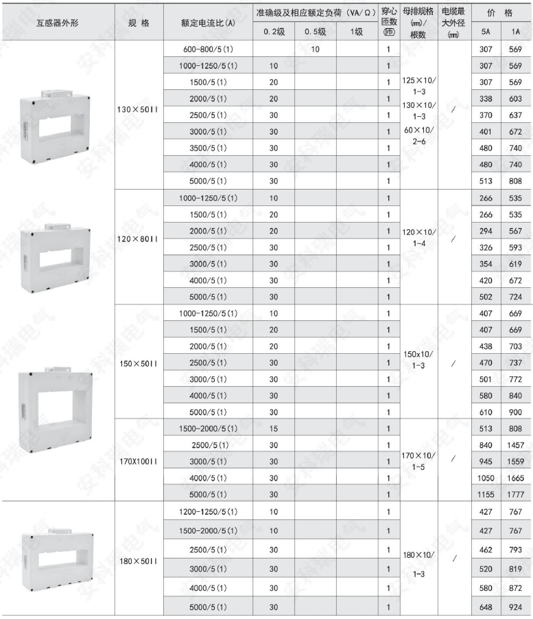 產品簡介:該系列互感器作為交流電流信號采集元件,可與測量儀表配套使用,一次電流測量范圍5-6300A,二次輸出5A或1A,測量范圍為額定值的5-120%。