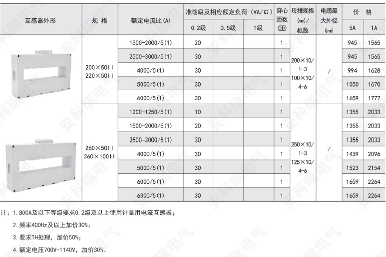 該系列互感器作為交流電流信號采集元件,可與測量儀表配套使用,一次電流測量范圍5-6300A,二次輸出5A或1A,測量范圍為額定值的5-120%。