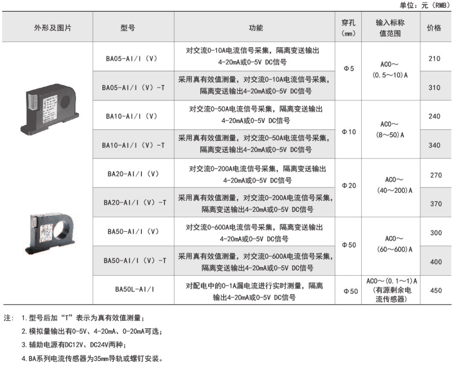 AC0~(0.1~1)A(有源剩余電流傳感器)  |
