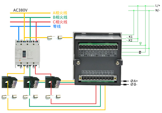 技術(shù)要求:輸入電壓三相AC380V;電流變比100A/5A;接線方式三相四線;準(zhǔn)確度0.5級(jí)。