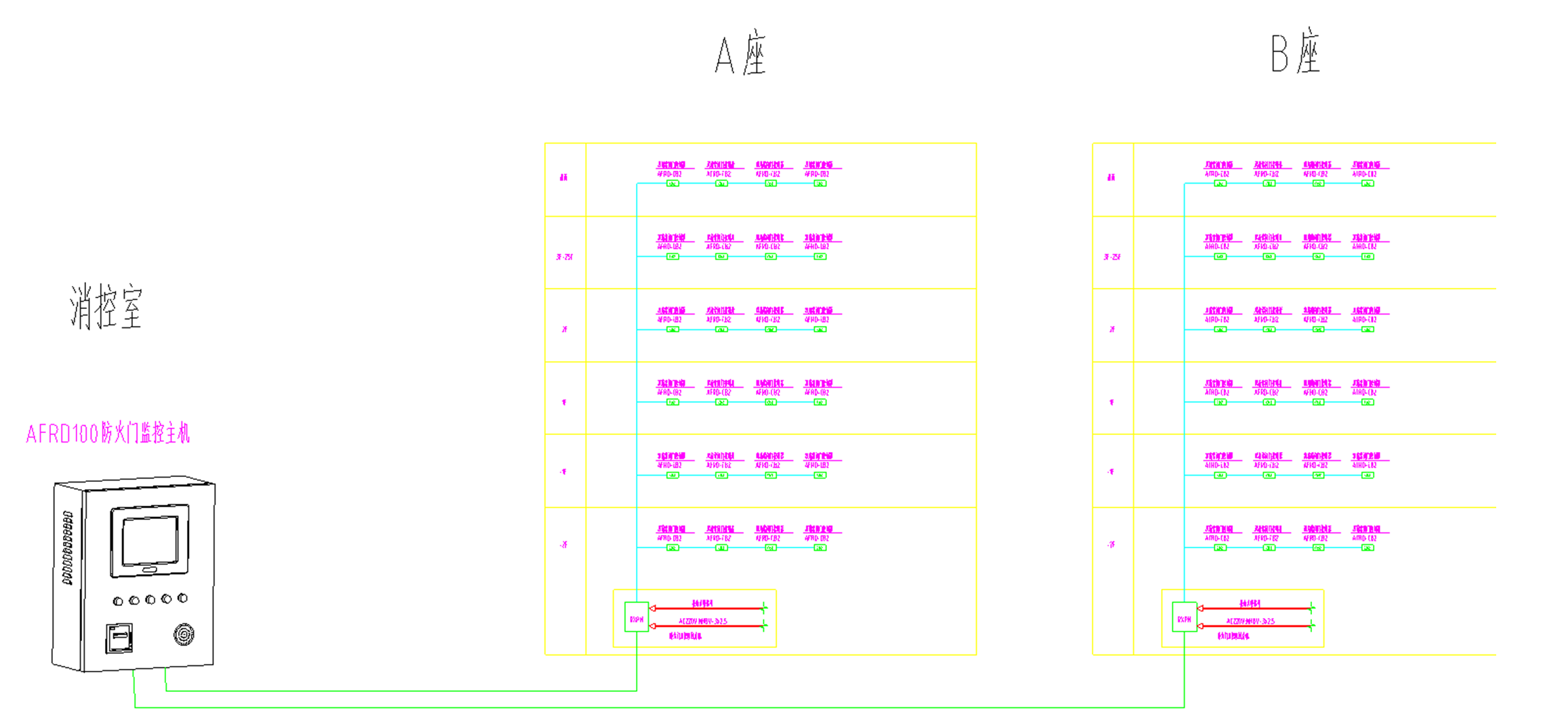本項目為新疆•首府公館項目,現場各商住樓各樓道樓梯間及地下室區域的防火門安裝安科瑞AFRD系列防火門監控模塊,在現場消防控制室設置安科瑞AFRD100/B壁掛式防火門監控主機,并在各棟樓內安裝監控區域分機實時監控各防火門狀態,防止防火門被異常開啟。