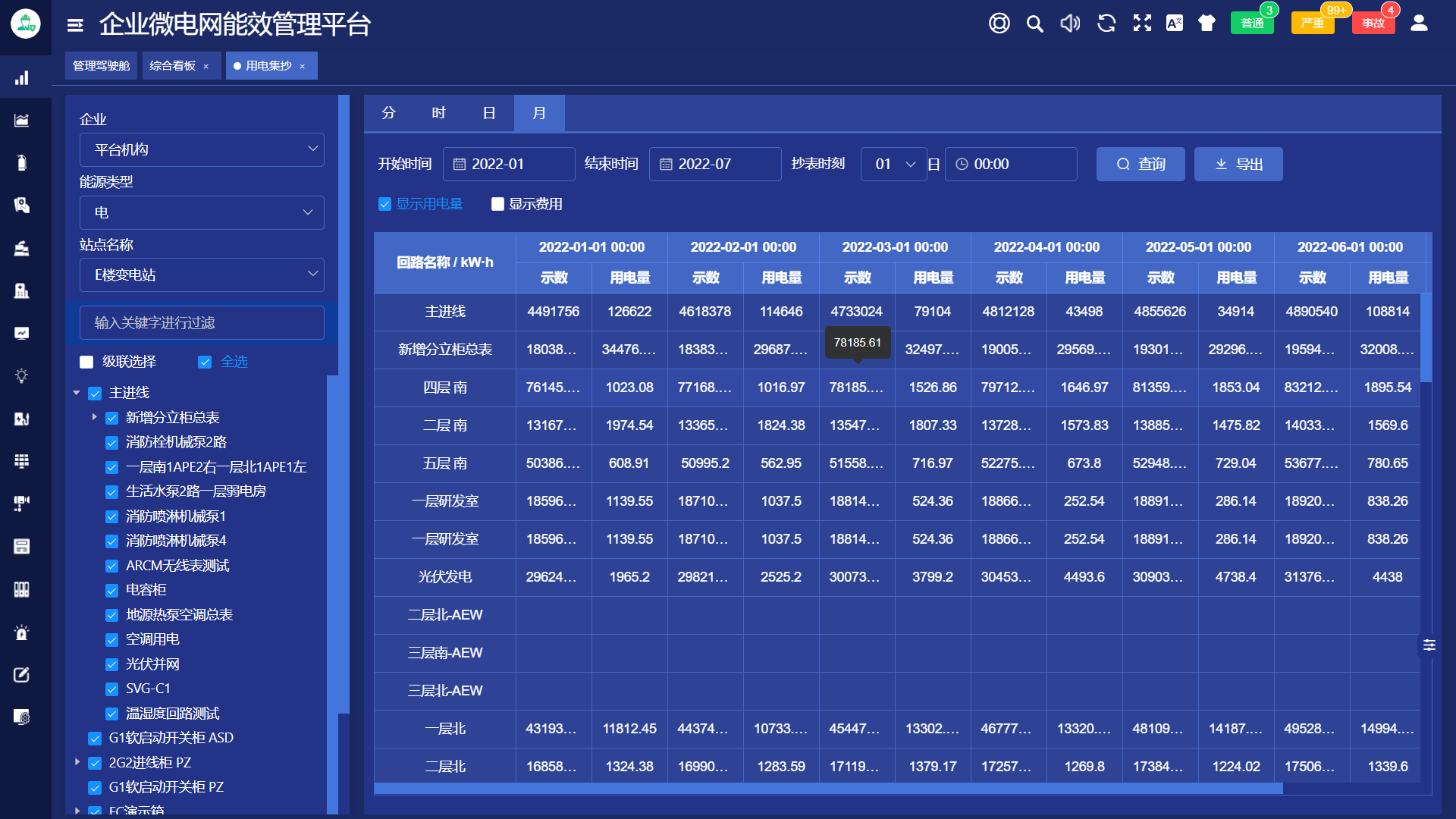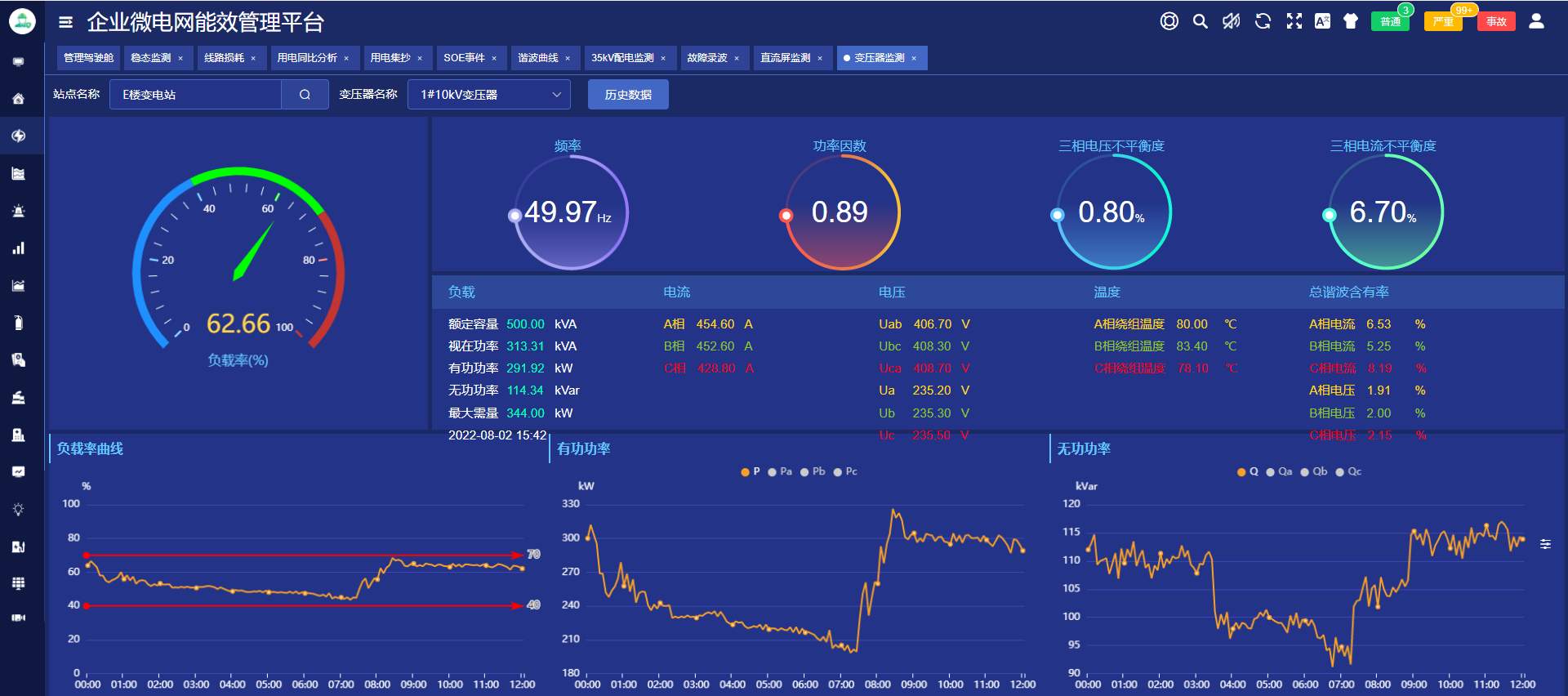 本項目共計5臺變壓器,10臺高壓柜,共有72個出線回路。安科瑞為該項目提供Acrel EMS企業微電網系統,包含一套Acrel EMS電力監控軟件,72臺AEM96/CFK多功能儀表以及6臺AM5系列綜保。