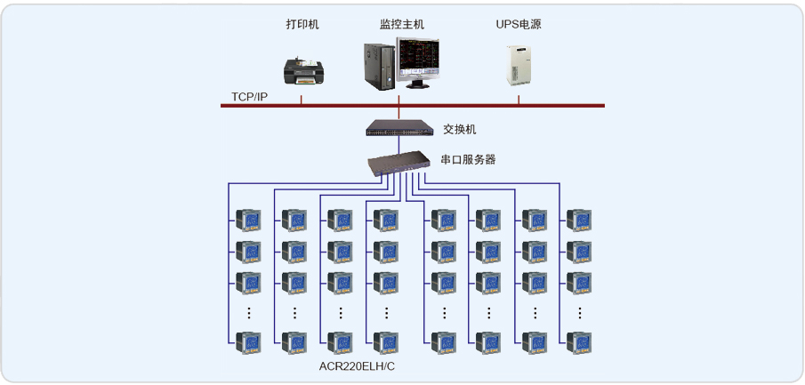 該機場配電室原采用GCS柜兩面,22路出線。原柜體安裝96型指針電流 表,要求實現各回路的電力參數實時監測與功率累計量統計功能,并實現現場斷路器狀態的監控值班室遠程監測。項目屬于改造項目,采用安科瑞公司ACR220EK網絡電力儀表于原配電柜基礎上更換老式指針表。