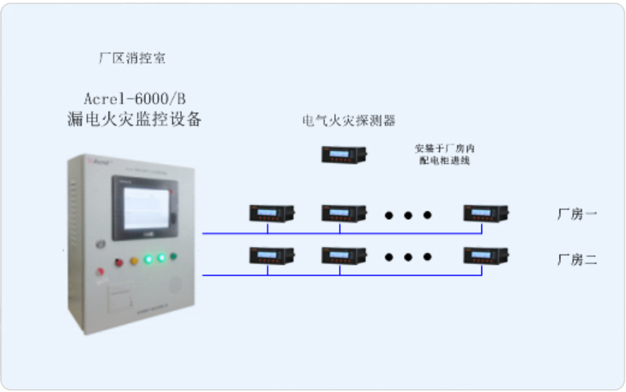 本項目針對其6萬噸年MTBE裝置原料預(yù)處理裝置所在廠房的配電系統(tǒng)設(shè)計一套電氣火災(zāi)監(jiān)控系統(tǒng)。通過實時監(jiān)測廠房內(nèi)的重要配電箱的進(jìn)線回路,實時監(jiān)測其漏電流的大小以及溫度等參量,通過限制預(yù)警,增強(qiáng)管理人員的電氣火災(zāi)隱患防范意識,提高電氣火災(zāi)隱患的排查效率,確保廠房內(nèi)的生產(chǎn)安全。