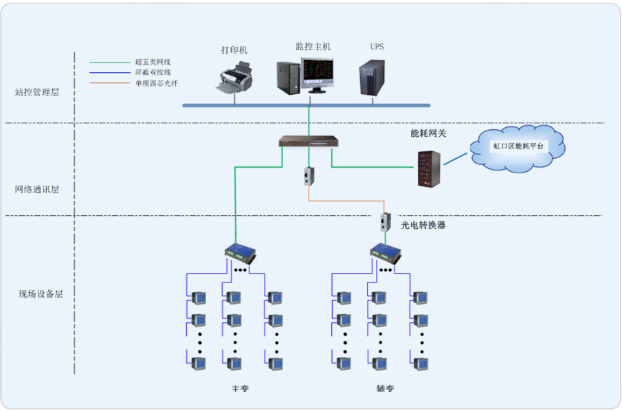根據(jù)上海虹口區(qū)的相關(guān)能耗導(dǎo)則,現(xiàn)針對虹口區(qū)的兩個(gè)變電所實(shí)現(xiàn)能耗的實(shí)時(shí)監(jiān)控,并按照區(qū)域能耗平臺(tái)的數(shù)據(jù)要求,將虹口足球場的用能分為空調(diào)用電、照明插座用電、動(dòng)力用電以及特殊用電,將以上數(shù)據(jù)不間斷上傳至虹口區(qū)能耗平臺(tái)。