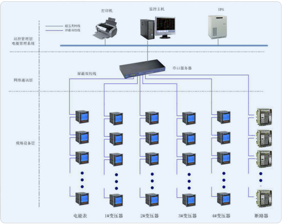 1. 實時數(shù)據(jù)采集 通過現(xiàn)場控制層單元實時采集現(xiàn)場各種模擬量、開關(guān)量、脈沖量及溫度量、電度抄表等;