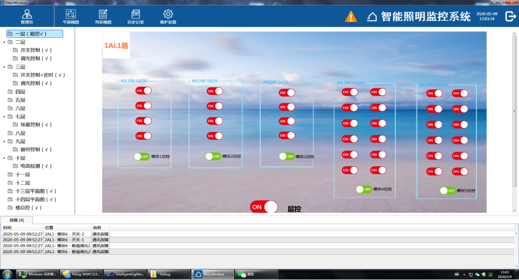 3)可以對單個照明回路實現開關控制;每個模塊、樓層都有相應的模塊控制開關和樓層控制開關,也可以一個模塊或者整個樓層實現開關控制。