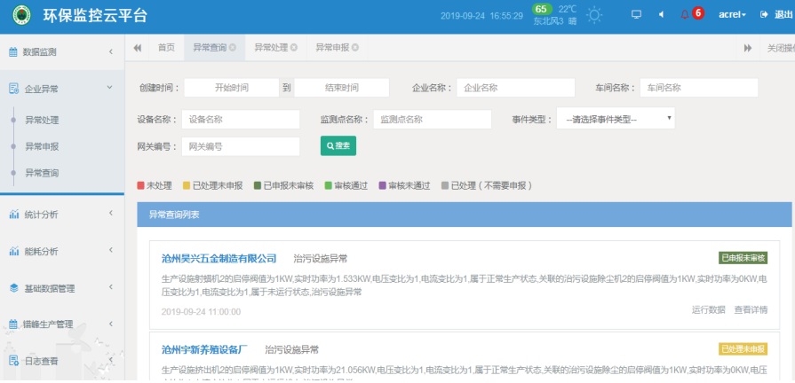 企業運行狀態統計:按年/月/日統計分析企業、監測點、產污設施、治污設施等異常產生的情況。
