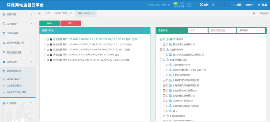 減排企業錄入:按企業/行業/區域批量配置企業需要執行的減排方案。