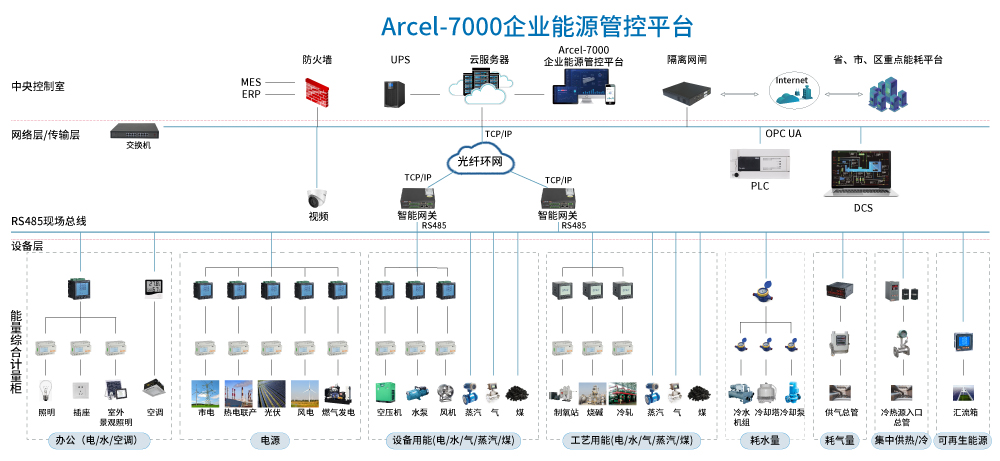 Acrel-7000企業(yè)能源管控系統(tǒng)采用自動化、信息化技術和集中管理模式,對企業(yè)的生產、輸配和消耗環(huán)節(jié)實行的動態(tài)監(jiān)控和數據化管理,監(jiān)測企業(yè)電、水、燃氣、蒸汽及壓縮空氣等各類能源的消耗情況,通過數據分析、挖掘,幫助企業(yè)針對各種能源需求及實際用能情況、產品能源單耗、工序能耗、重點設備用能等進行能耗統(tǒng)計、同環(huán)比分析、能源成本分析、用能預測、碳排分析,為企業(yè)加強能源管理,提高能源利用效率、挖掘節(jié)能潛力、為節(jié)能評估、能源審計提供基礎數據。