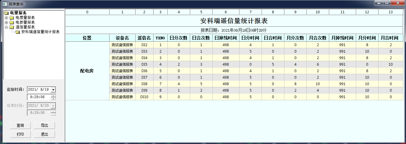 Acrel-1000綜合自動(dòng)化監(jiān)控系統(tǒng)具備對(duì)開(kāi)關(guān)分合次數(shù)統(tǒng)計(jì)功能,用戶(hù)可以自由查詢(xún)自系統(tǒng)正常運(yùn)行以來(lái)各開(kāi)關(guān)量每日、月分合次數(shù),分合時(shí)間以及掉線(xiàn)時(shí)間。