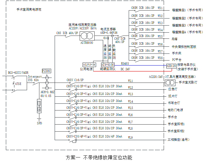 二、手術室配電解決方案(以GGF-O8G隔離配電柜系統圖為例)