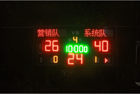 營銷隊(duì)在下半場不甘示弱,但最終比分還是以營銷隊(duì):系統(tǒng)隊(duì)26:40的絕對優(yōu)勢勝出,比賽結(jié)束后雙方握手擁抱,以示友誼賽的精神:球場是對手,場下是兄弟。