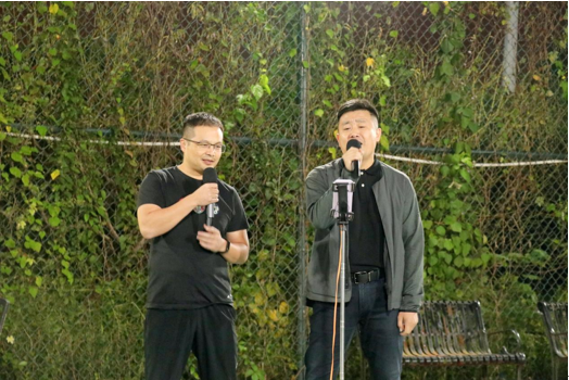 漫步籃球場,夜幕已經降臨,氣氛逐漸活躍。大家的熱情如同滾燙的爐火,沖散了寒露時節的絲絲涼意。籃球場圍滿了觀眾,燒烤攤邊炊煙裊裊,餐桌上擺滿了飲料啤酒,今晚是狂歡盛宴!甩開平日里的拘束,此刻,只有朋友、燒烤、酒、音樂!