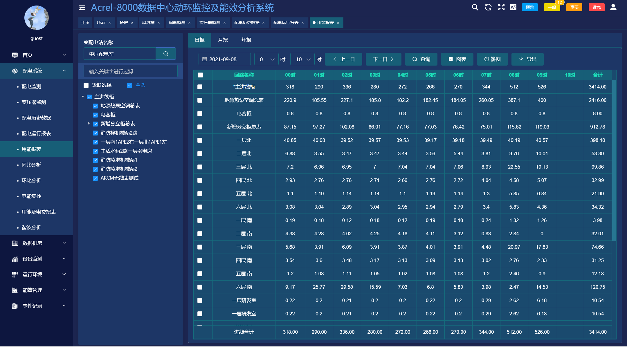 電力監(jiān)控系統(tǒng)以豐富的報(bào)表體支撐量體系的完整性。系統(tǒng)具備定時(shí)抄表匯總統(tǒng)計(jì)功能,用戶可以自由查詢自系統(tǒng)正常運(yùn)行以來任意時(shí)間段內(nèi)各配電節(jié)點(diǎn)的用電情況,即該節(jié)點(diǎn)進(jìn)線用電量與各分支回路消耗電量的統(tǒng)計(jì)分析報(bào)表。