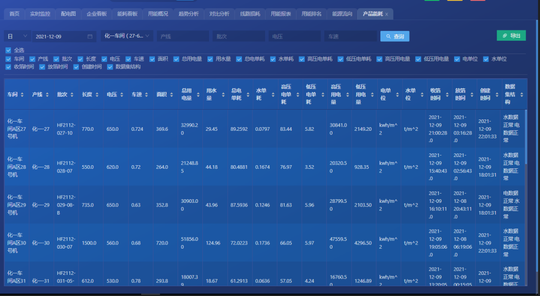 系統根據能源消耗及生產計劃安排計算區間產品噸水電耗或萬元產值能耗,從而制定能源績效考核。