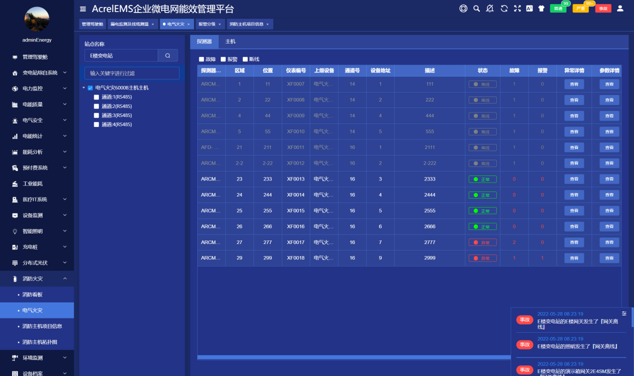 該系統可針對低壓用電環節各回路中的剩余電流、溫度和故障電弧等進行實施監測;
