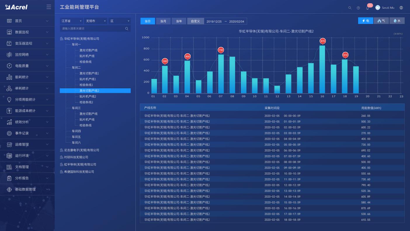 系統(tǒng)對區(qū)域、工段、設(shè)備能源消耗進(jìn)行數(shù)據(jù)采集,監(jiān)測重點(diǎn)設(shè)備及工藝運(yùn)行狀態(tài),如溫度、濕度、流量、壓力、速度等,并支持變配電系統(tǒng)一次運(yùn)行監(jiān)視。可直接從動(dòng)態(tài)監(jiān)測平面圖快速瀏覽到所管理的能耗數(shù)據(jù),支持按能源種類、車間、工段、時(shí)間等維度查詢相關(guān)能源用量。