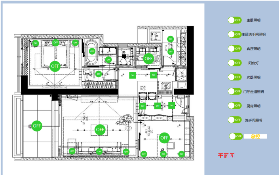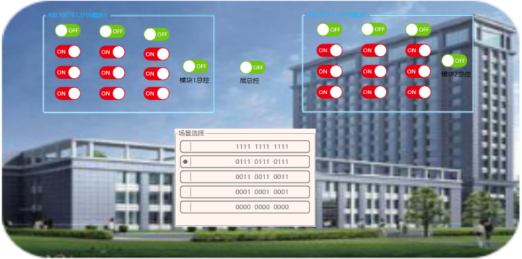 可以通過電腦或者觸控終端控制一棟樓、某一層或某個(gè)區(qū)域所有照明燈具開關(guān)。可以對(duì)單個(gè)照明回路實(shí)現(xiàn)開關(guān)控制,還可對(duì)每個(gè)模塊、箱子、樓層、自定義分區(qū)實(shí)現(xiàn)總控。現(xiàn)場(chǎng)受控回路的開關(guān)狀態(tài)會(huì)實(shí)時(shí)反饋。