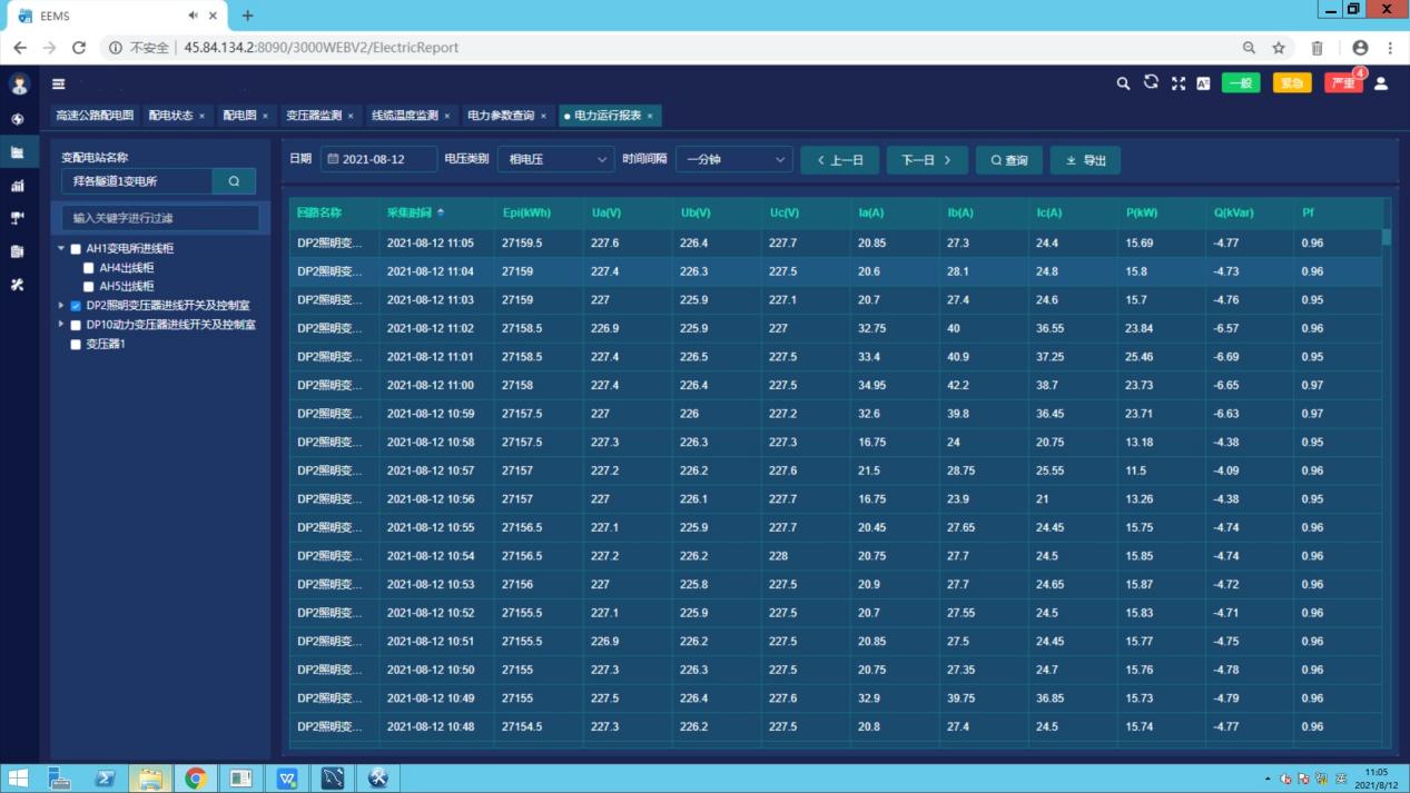 查詢各回路或設(shè)備指定時(shí)間的運(yùn)行參數(shù),報(bào)表中顯示電參量信息應(yīng)包括:各相電流、三相電壓、總功率因數(shù)、總有功功率、總無功功率、正向有功電能等.